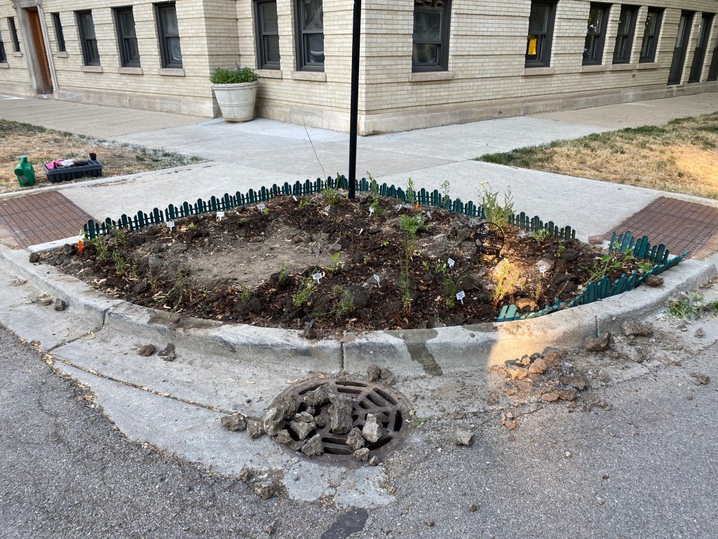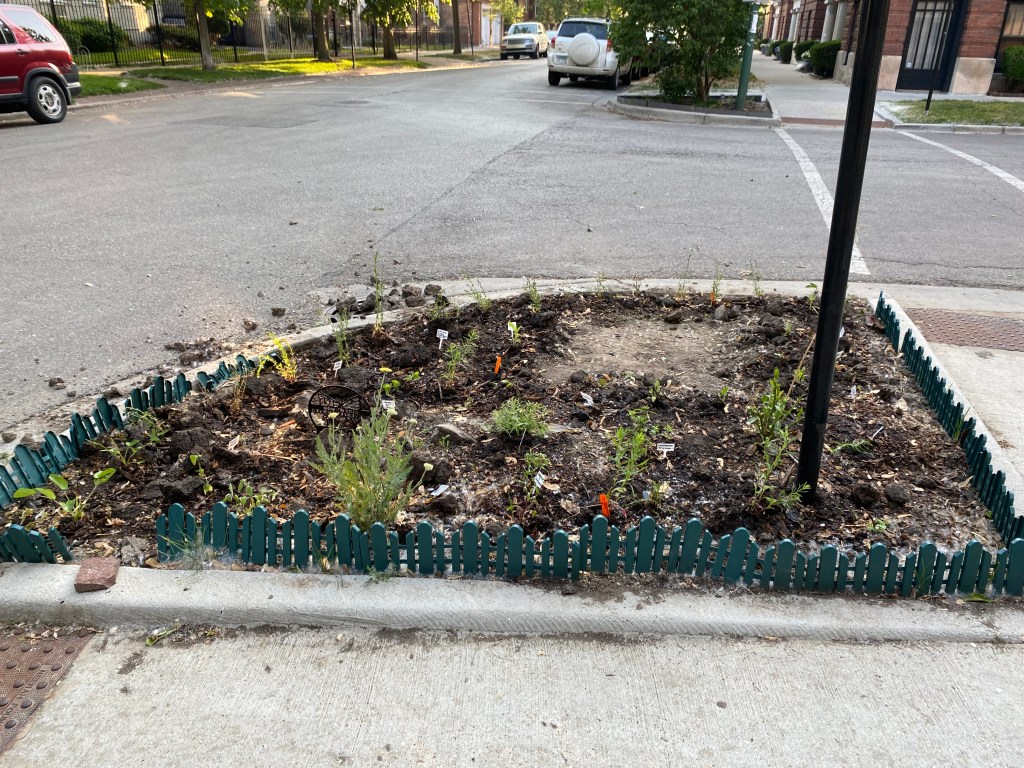 Add to it that many of last year’s cultivars never came back and what you are left with is a pretty barren looking space. Thankfully my friend Alissa provided some fresh hope. She is spearheading an effort to plant natives in Touhy Park and had roughly a flat of plants leftover that they couldn’t fit into the space. So, they are finding a home in my corner garden. The plants include more asters, winged loosestrife, golden alexanders and brown eyed Susans. I’ve planted them throughout the space, frankly a little willy nilly, to see what takes. I’m not familiar with the first two so I’m excited to see what comes of them.