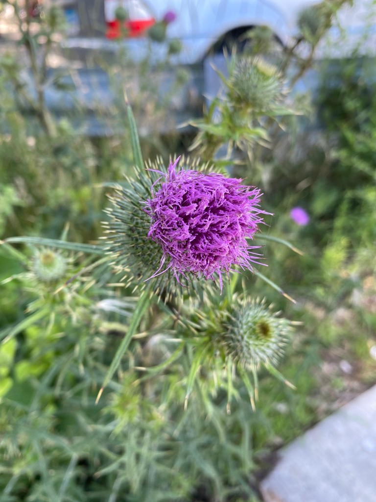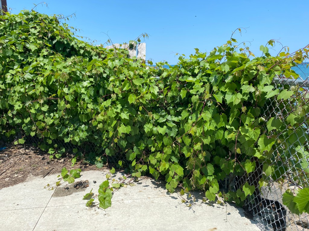 The weather has been quite hot this week, so I was only able to put in about 20 minutes of work thus far ripping out the tree of heaven and attacking the vine. At times I thought I was going to bring down the fence with the vines. I need to invest in a good pair of garden shears. I tried to tackle the spear thistle but even lightly grasping it had its thorns right through my garden gloves. Would love recommendations on good gloves or other ways to tackle it.