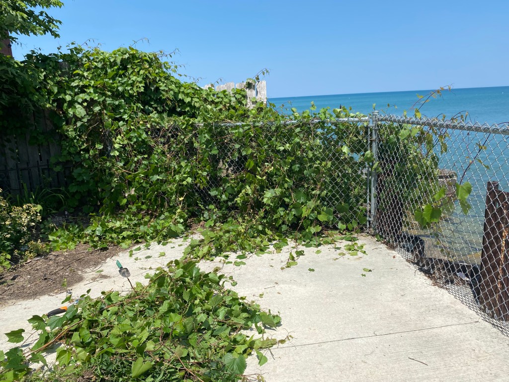 Before I created the Roger Park Monarch Butterfly Project and decided I wanted to plant a butterfly garden, I originally had designs on the space at the end of Birchwood where its dead ends into Lake Michigan. It seems like a great spot that was full of volunteer plants and could be redone to include some wonderful foragable plants. After changing direction on what I wanted to plant and why I chose the corner of Birchwood and Eastlake Terrace instead.