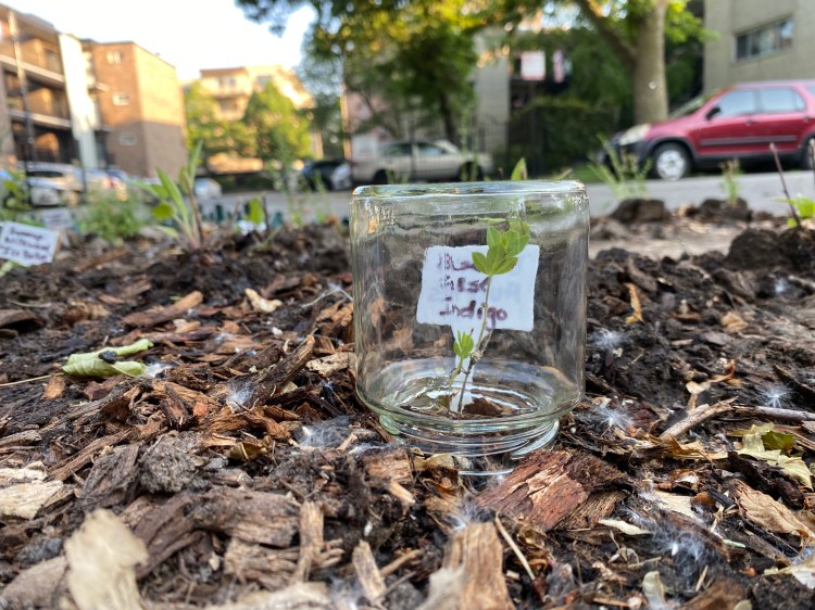 And part of everyone stopping by is opinions. On adding dirt. Or removing grass. How your plants spread out are and how you border the space. The flip side is that people contribute. Soil, metal sticks, regular sticks, plants, seeds. People want to engage.