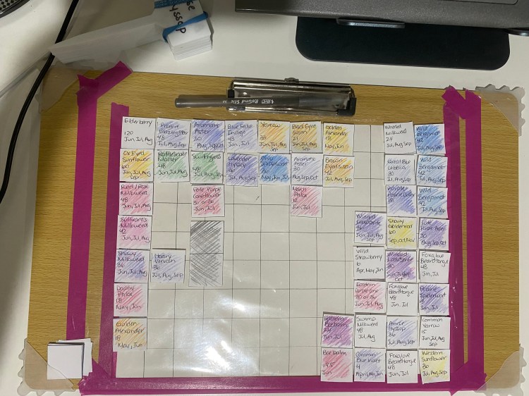 You’ll have to put your expectations aside. Created a butterfly garden specific for milkweed for monarchs. None of the milkweed has survived. Never spotted a butterfly. Two kinds of moths though. Also, you can plan until you are blue in the face, it all changes when you actually interact with the mud. Buying the fancy plant signs that rust after one season.