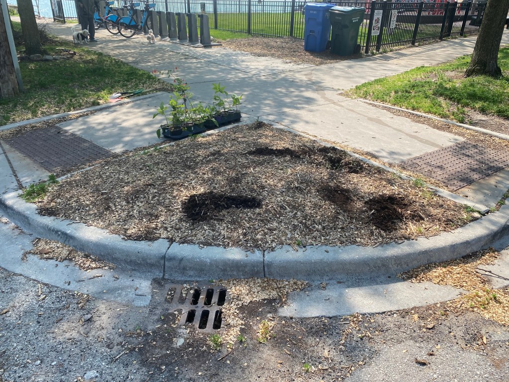 The next few hours were spent pulling up old landscaping fabric, figuring out the strategy for what plants go where, and then digging in. Lots of lovely neighbors stopped by to comment and share the history of the corner and their lives in Rogers Park.